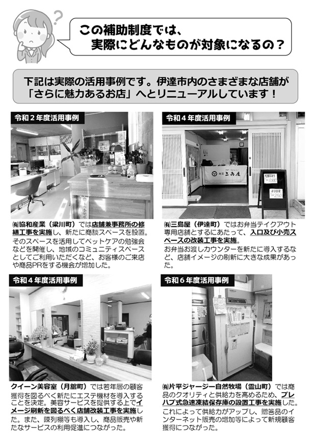 伊達市内の様々な店舗で活用されており、「さらに魅力的なお店」へとリニューアルしております。